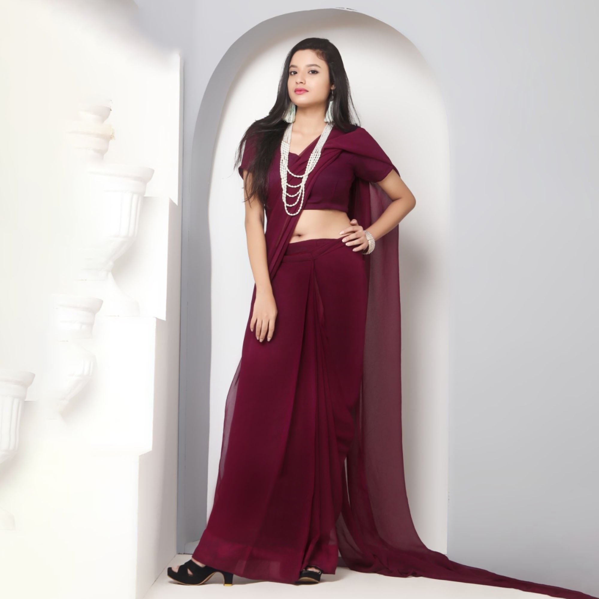 Stitched Luxury Chiffon Saree With Blouse & Petticoat